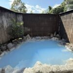 露天風呂は見事に青く濁っています。